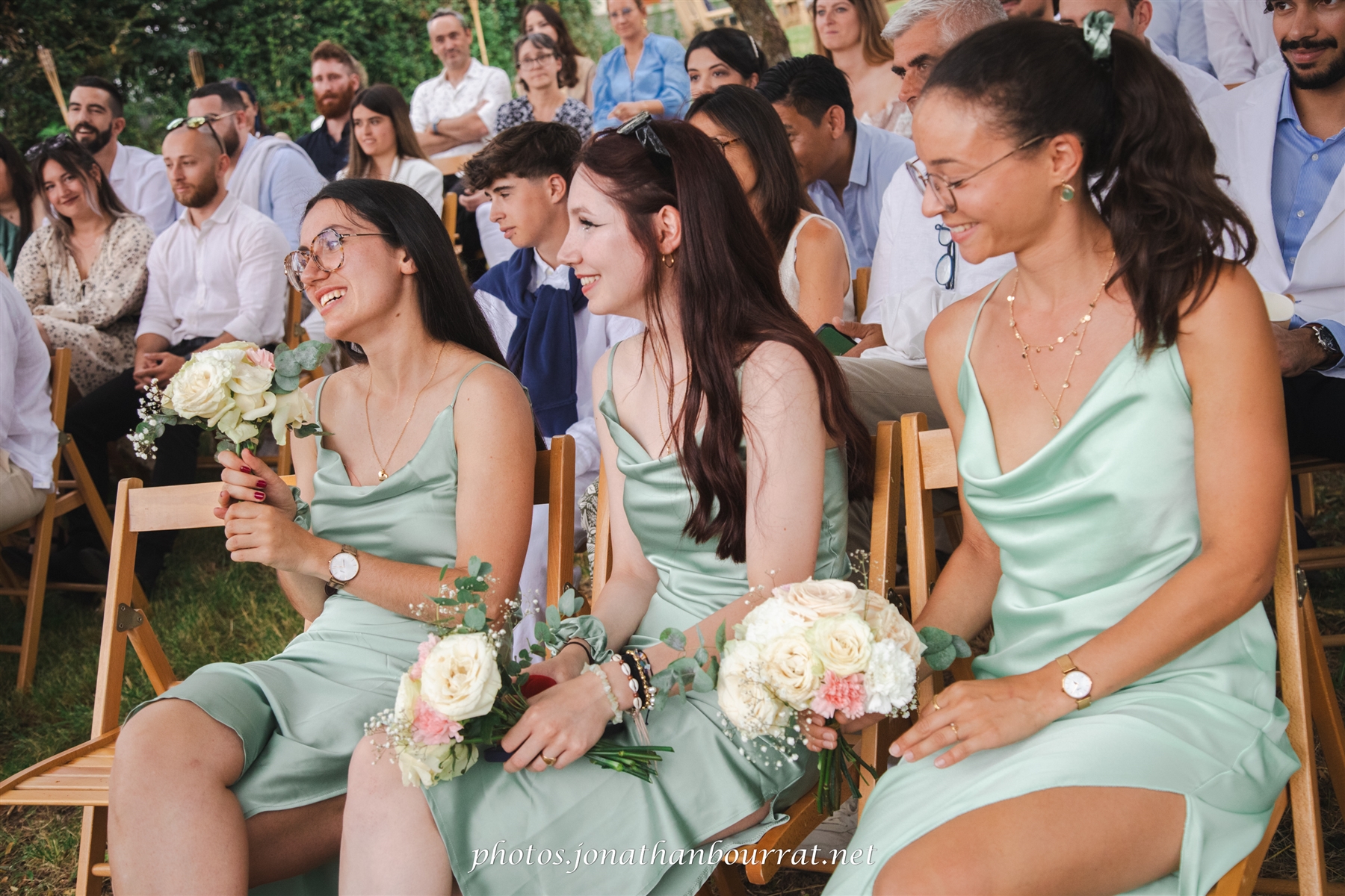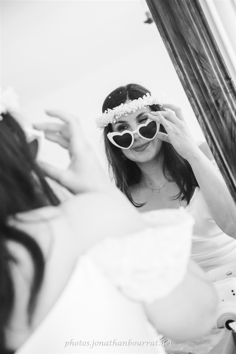 – les coulisses de la préparation de la mariée (robe, maquillage, cadeaux…) entourées de ses amis et des demoiselles d’honneur. Il s’agit d’une étape tranquille avant la douce folie du reste de la journée et qui permet de découvrir ici la mariée entourées de ses demoiselles d’honneur dont les longues robes élégantes étaient en parfaite harmonie avec le cadre assez vert de l’évènement et le costume du mari.