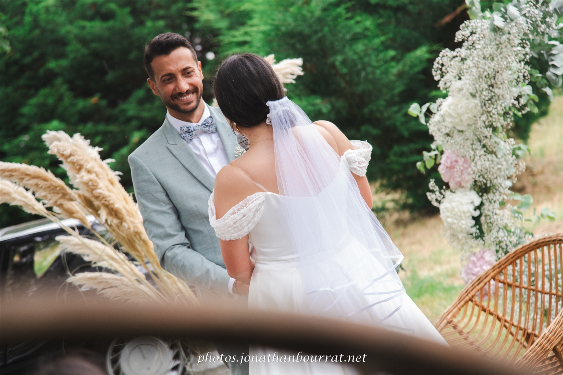 C’est par une belle après-midi ensoleillée que Karine et Kassem se sont dit « Oui » dans le cadre de cette cérémonie laïque réalisée en extérieur dans un jardin.
