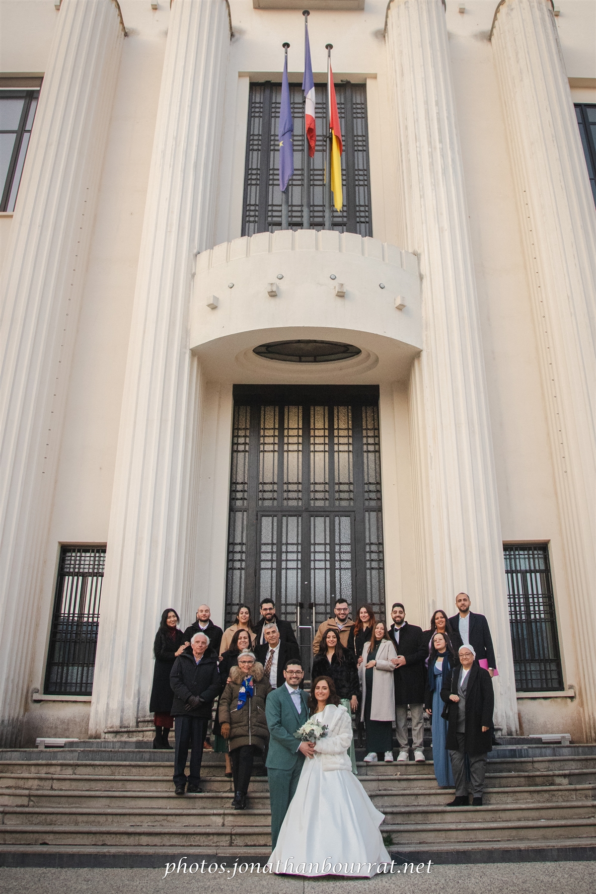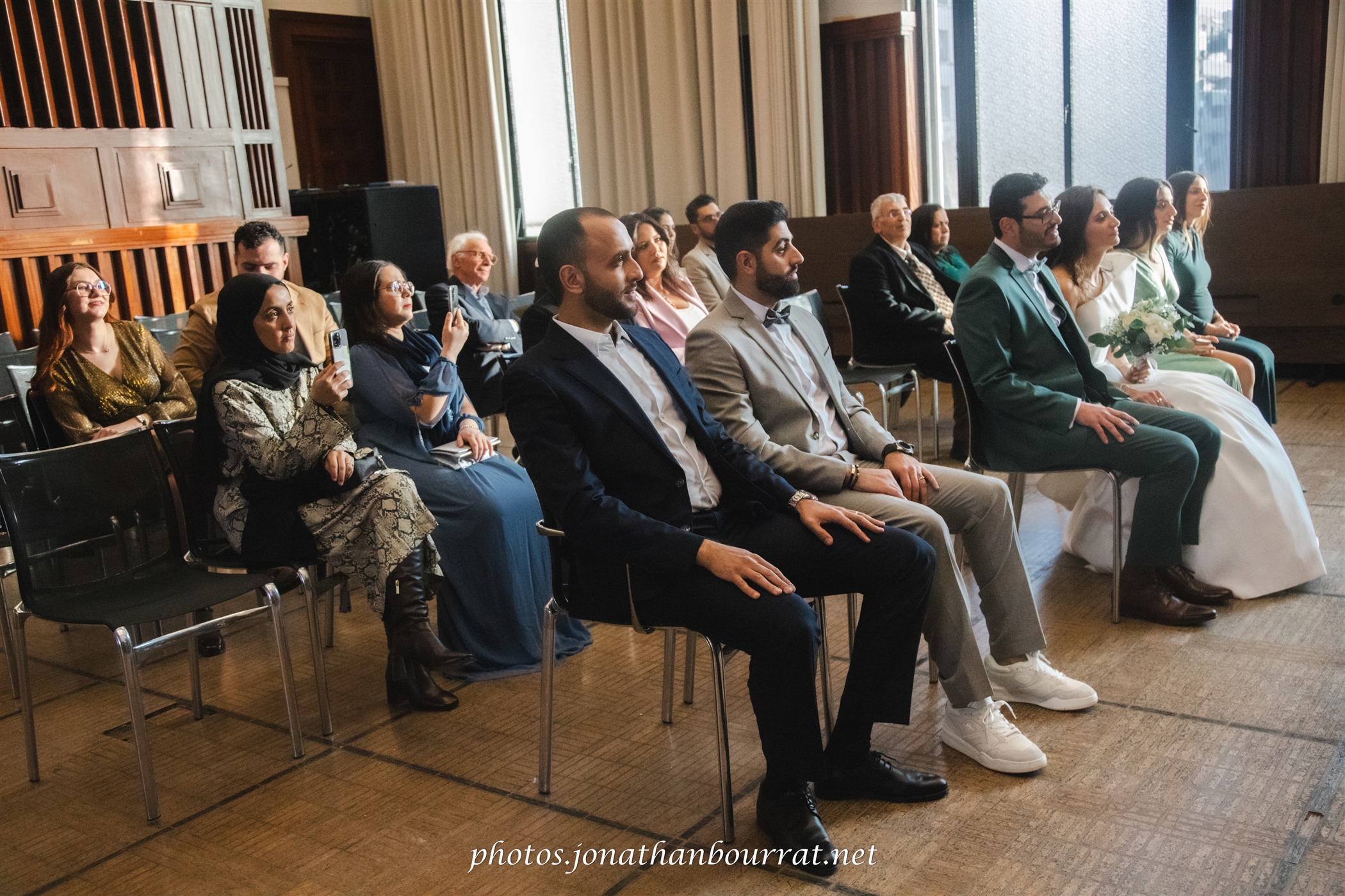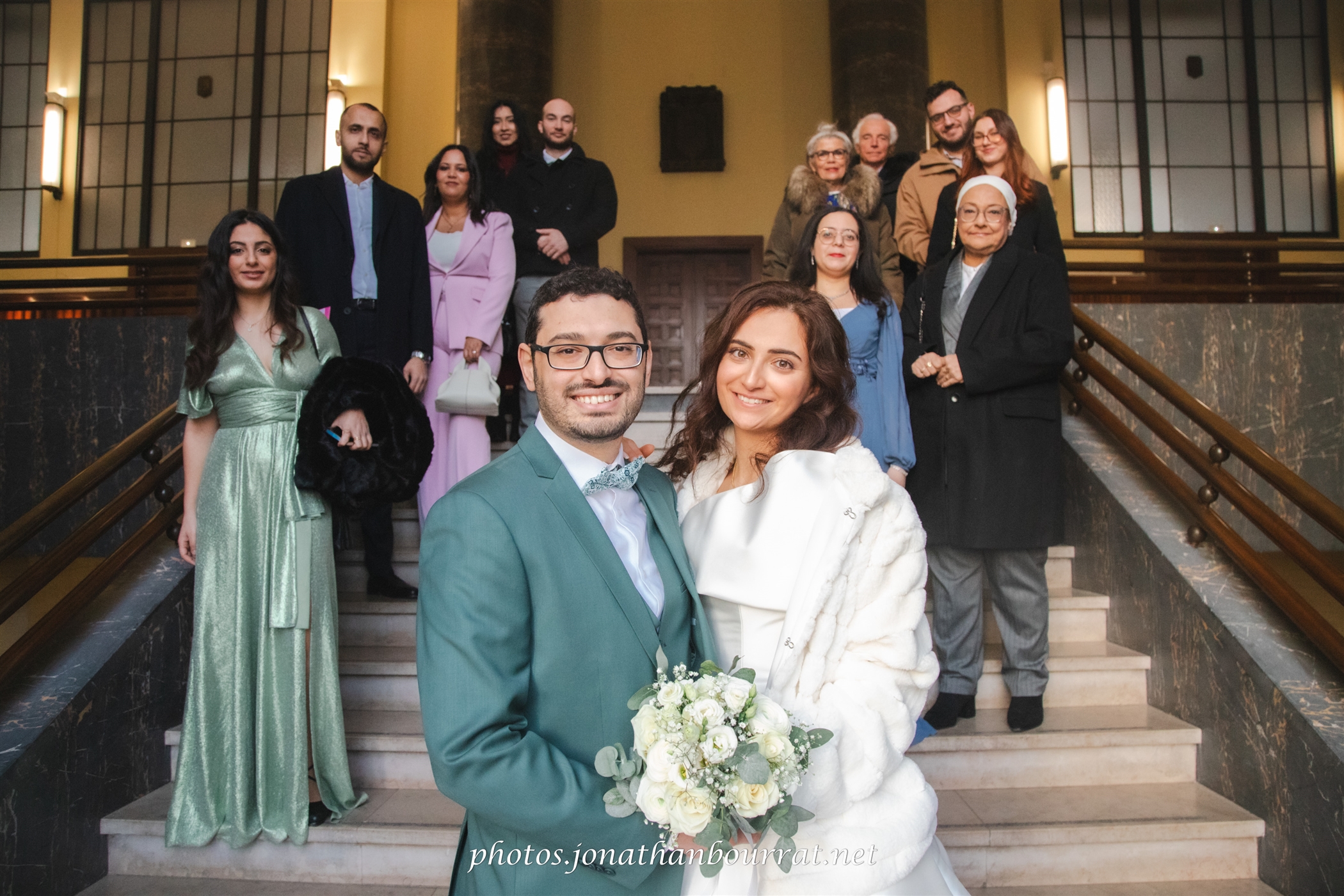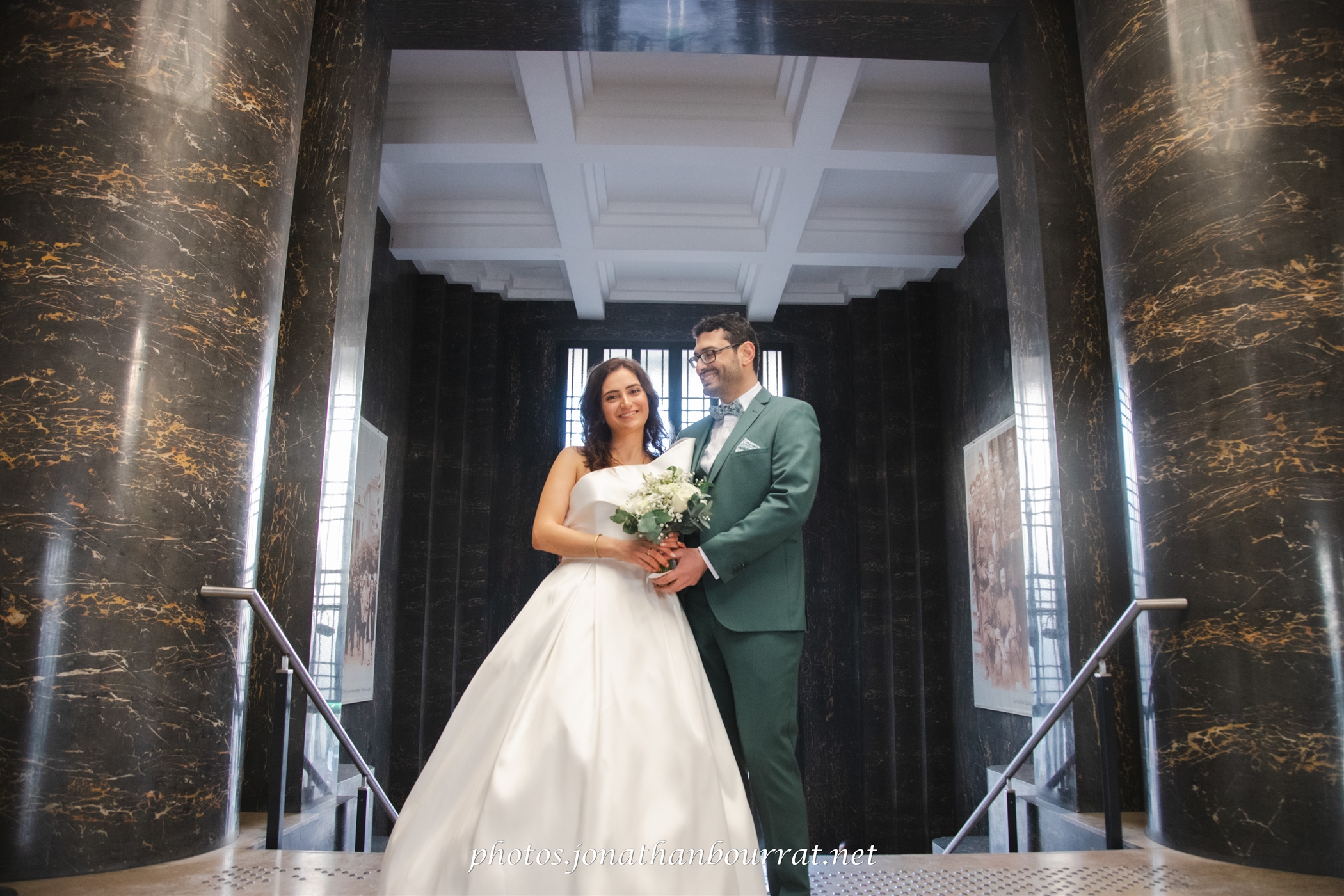 C’est là que s’est déroulée la cérémonie en mairie à l’intérieur de laquelle nous fîmes également plusieurs clichés en groupe ou détails comme par exemple pour les alliances et leur beau coffret ou encore le bouquet (dans les grands escaliers, couloirs et bien évidemment la salle dédiée aux mariages)…