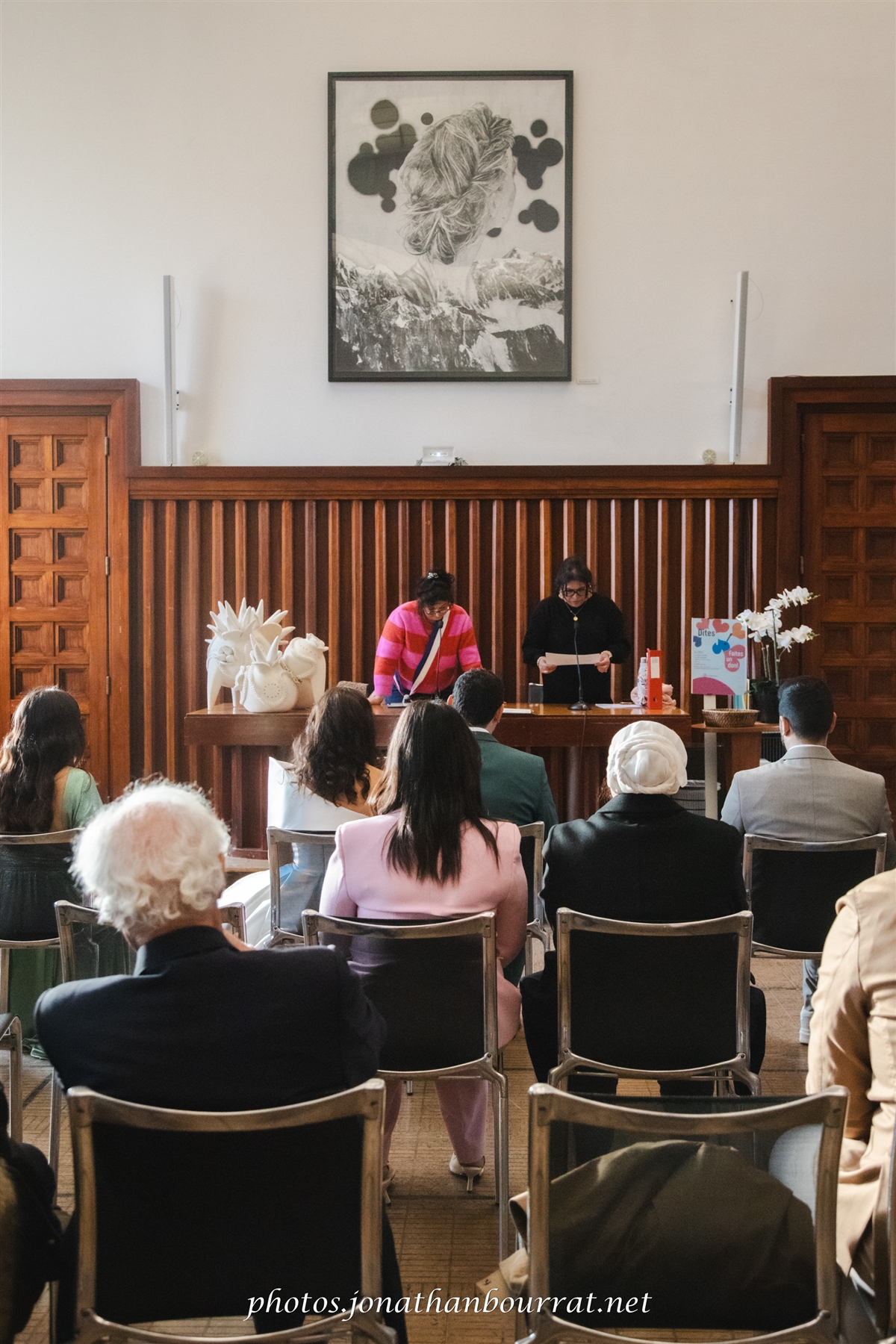 Tout commença par une arrivée dans une voiture de collection rouge rutilante. Le temps de faire quelques clichés et nous nous dirigeons vers l’entrée de l’hôtel de ville située face à l’avenue Henri Barbusse.