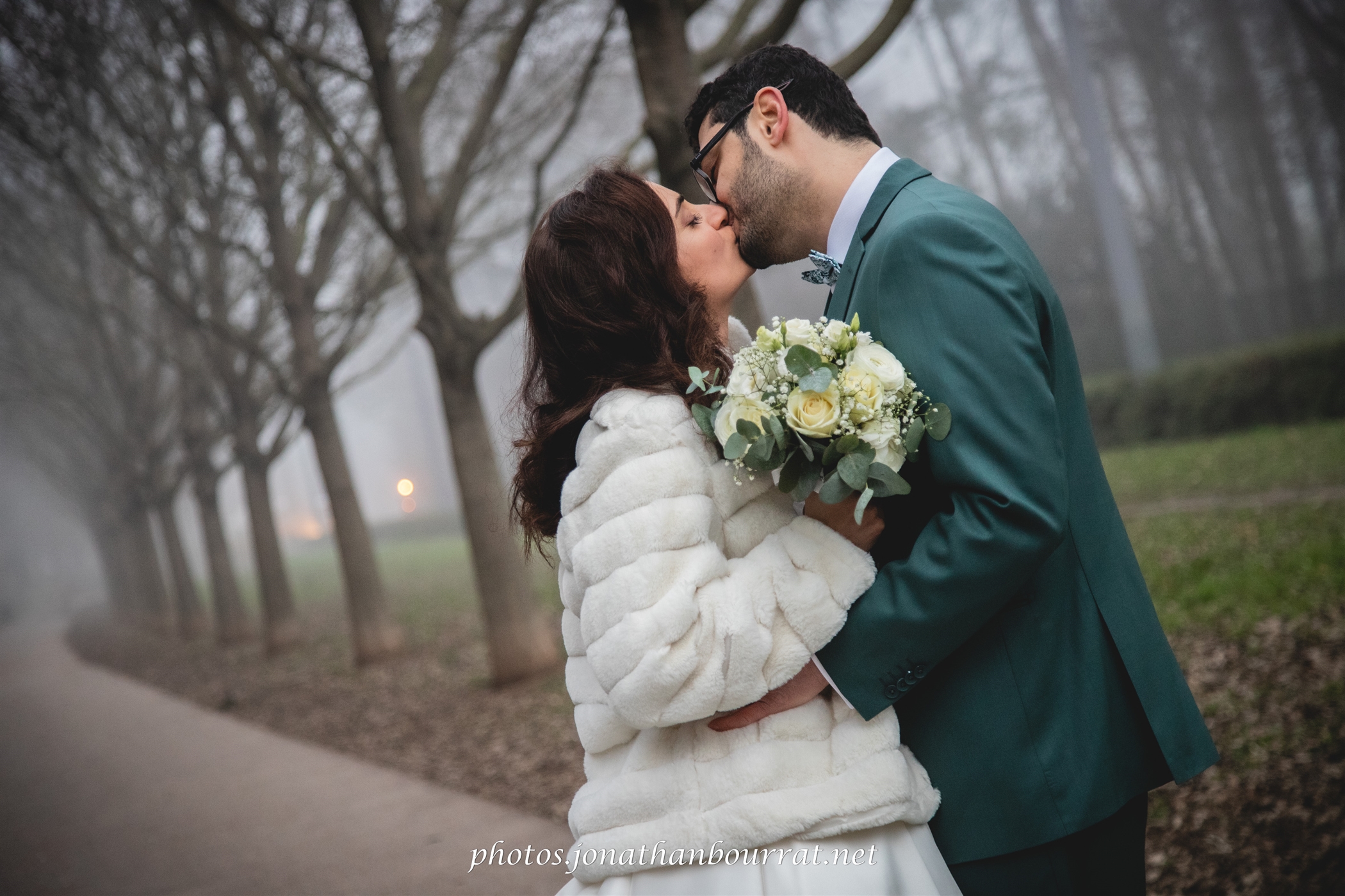 Pour la séance en couple c’est ensuite du côté de la grande roseraie du parc de la tête d’or que nous sommes allé. Le brouillard de cette saison hivernale donne une ambiance très particulière à ces clichés en duo.