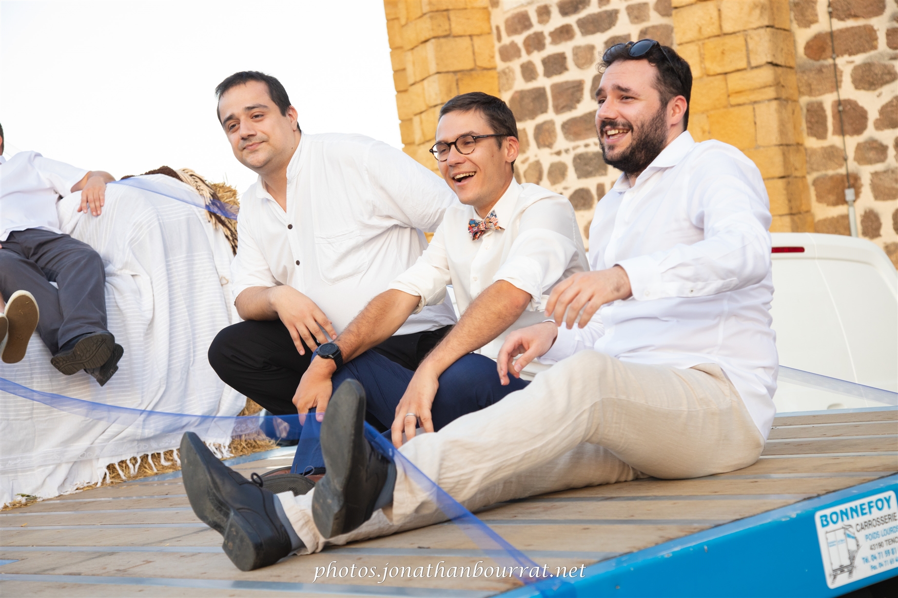Originalité, le carrosse du couple était cette fois un beau camion joliment décoré. 😉