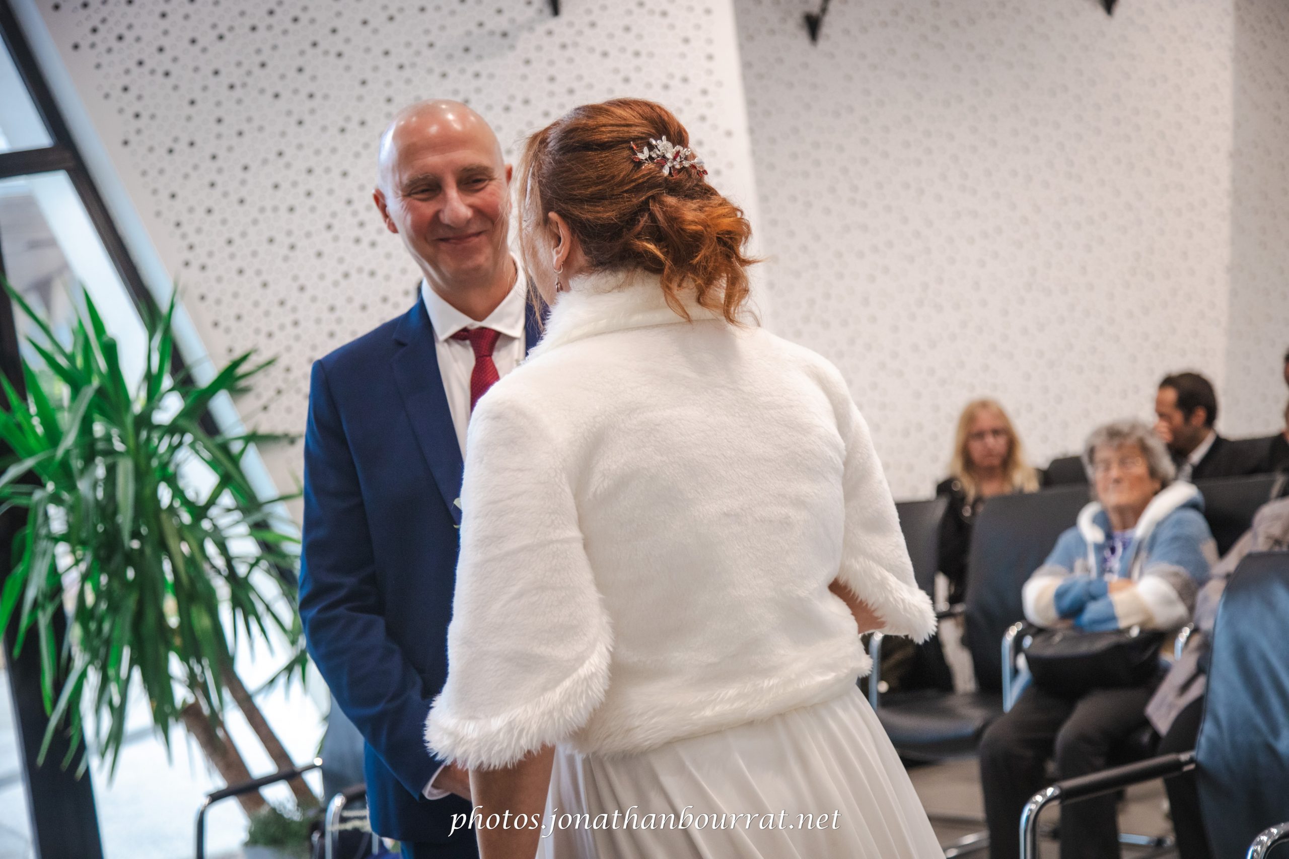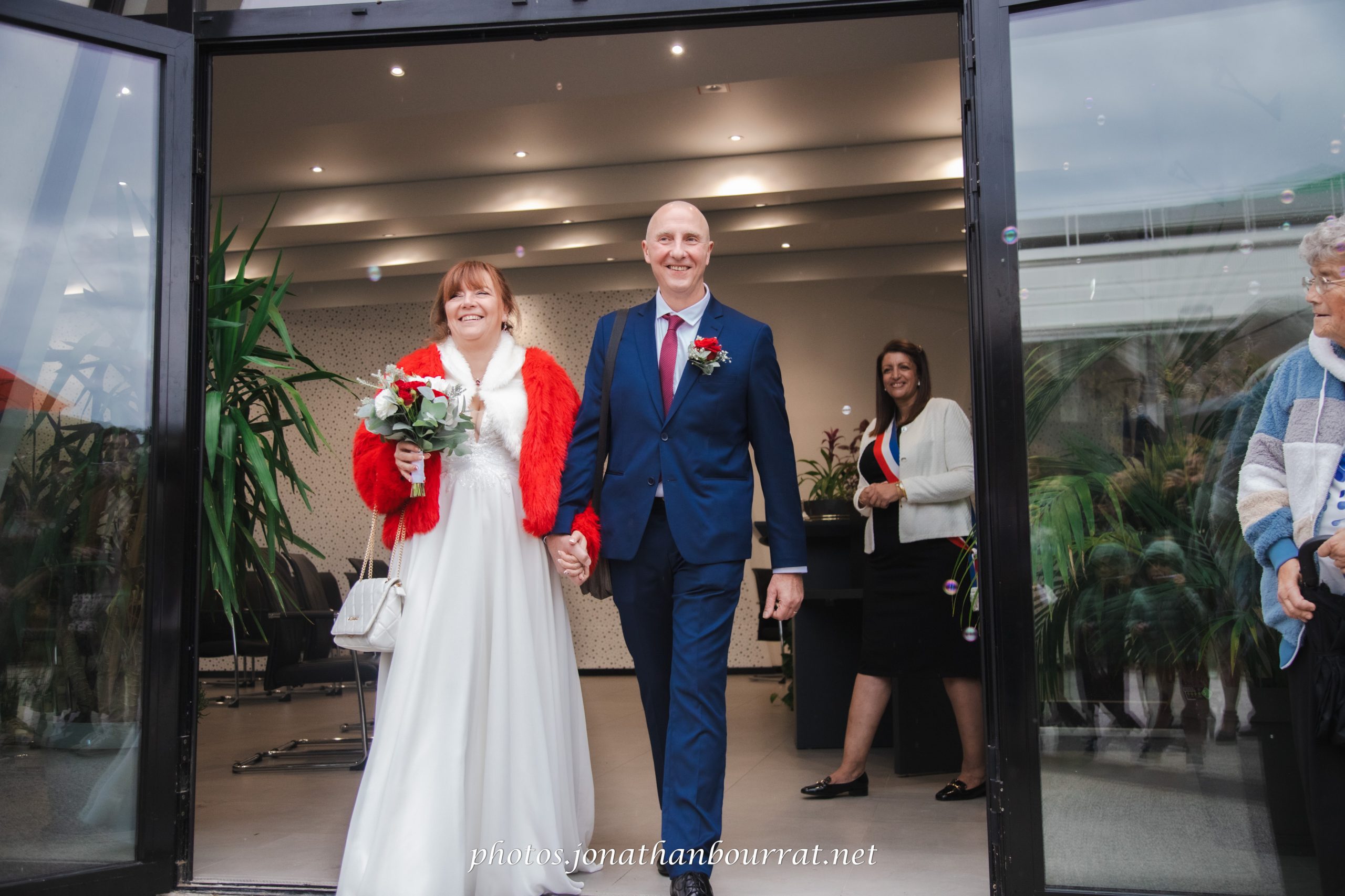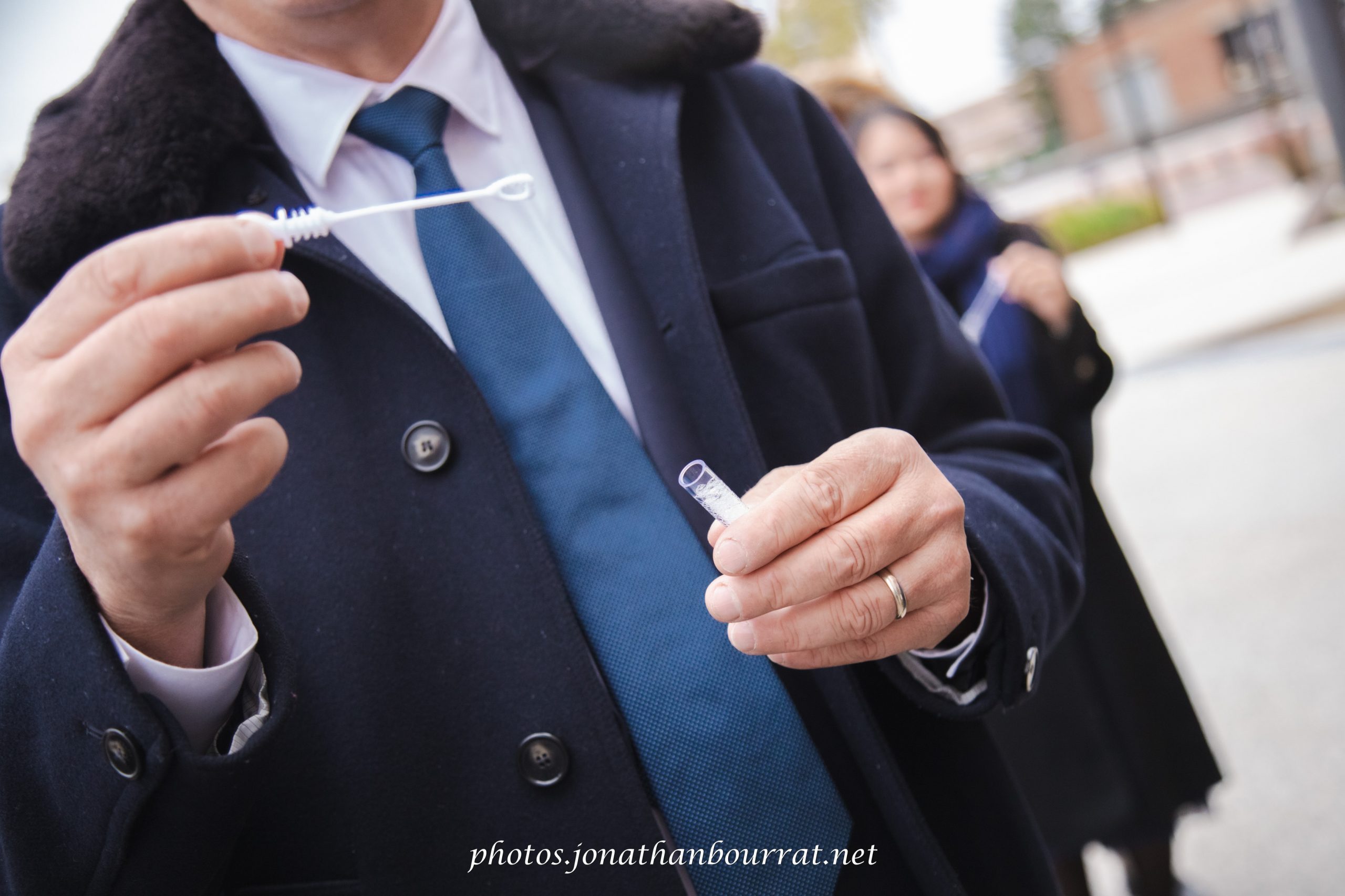 Ce reportage débuta donc du côté de la mairie de Vaulx-en-Velin qui propose une assez jolie salle à l’architecture moderne. Consentement, échange des alliances, baiser… autant de temps forts qui émurent l’assemblée. Une fois la cérémonie terminée les embrassades et accolades furent nombreuses. Même la pluie s’estompait, et la sortie des nouveaux époux fut saluée par une salve de bulles de savons générées par la invités (cela est plus original que l’habituel lancer de riz).