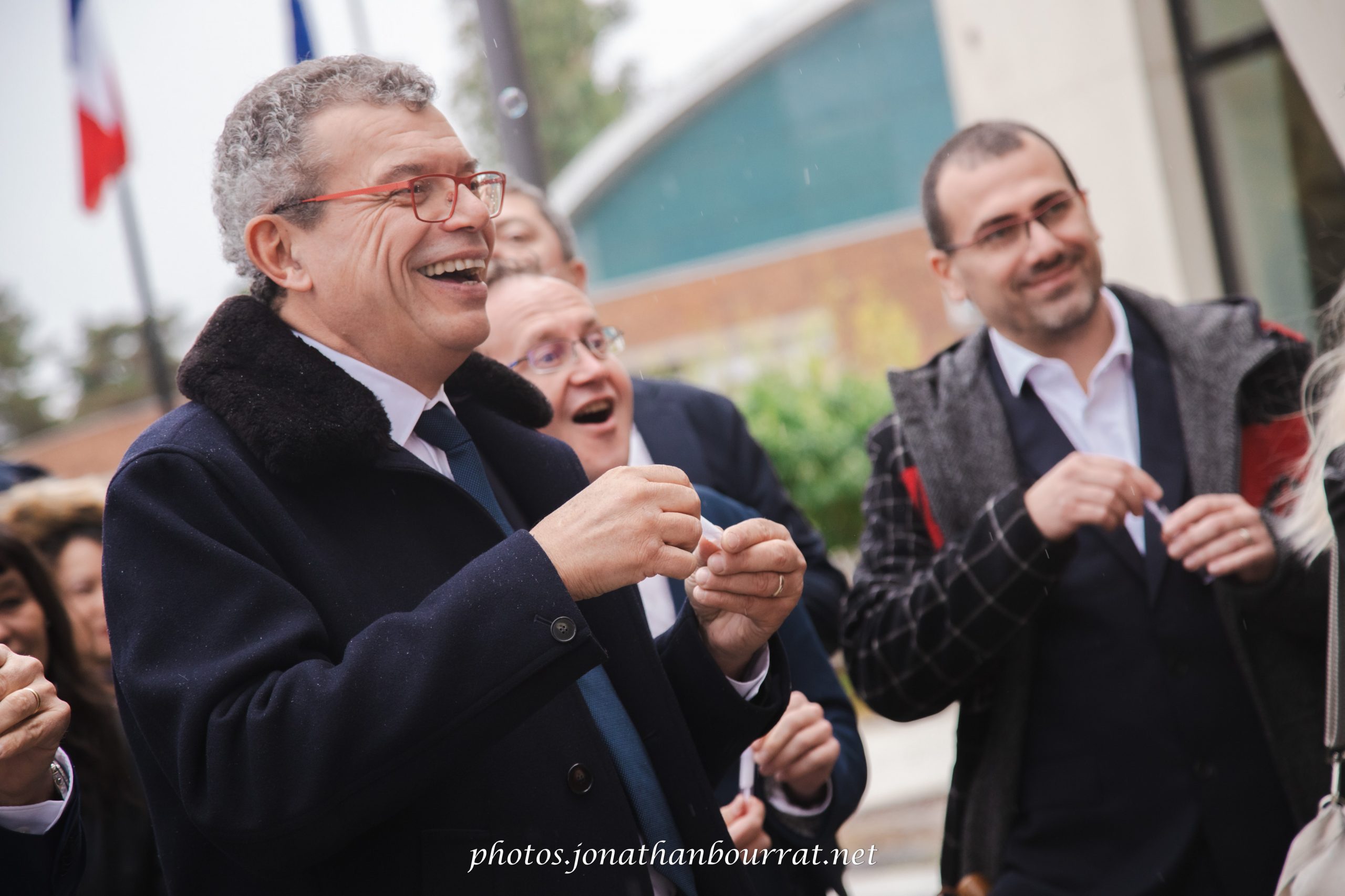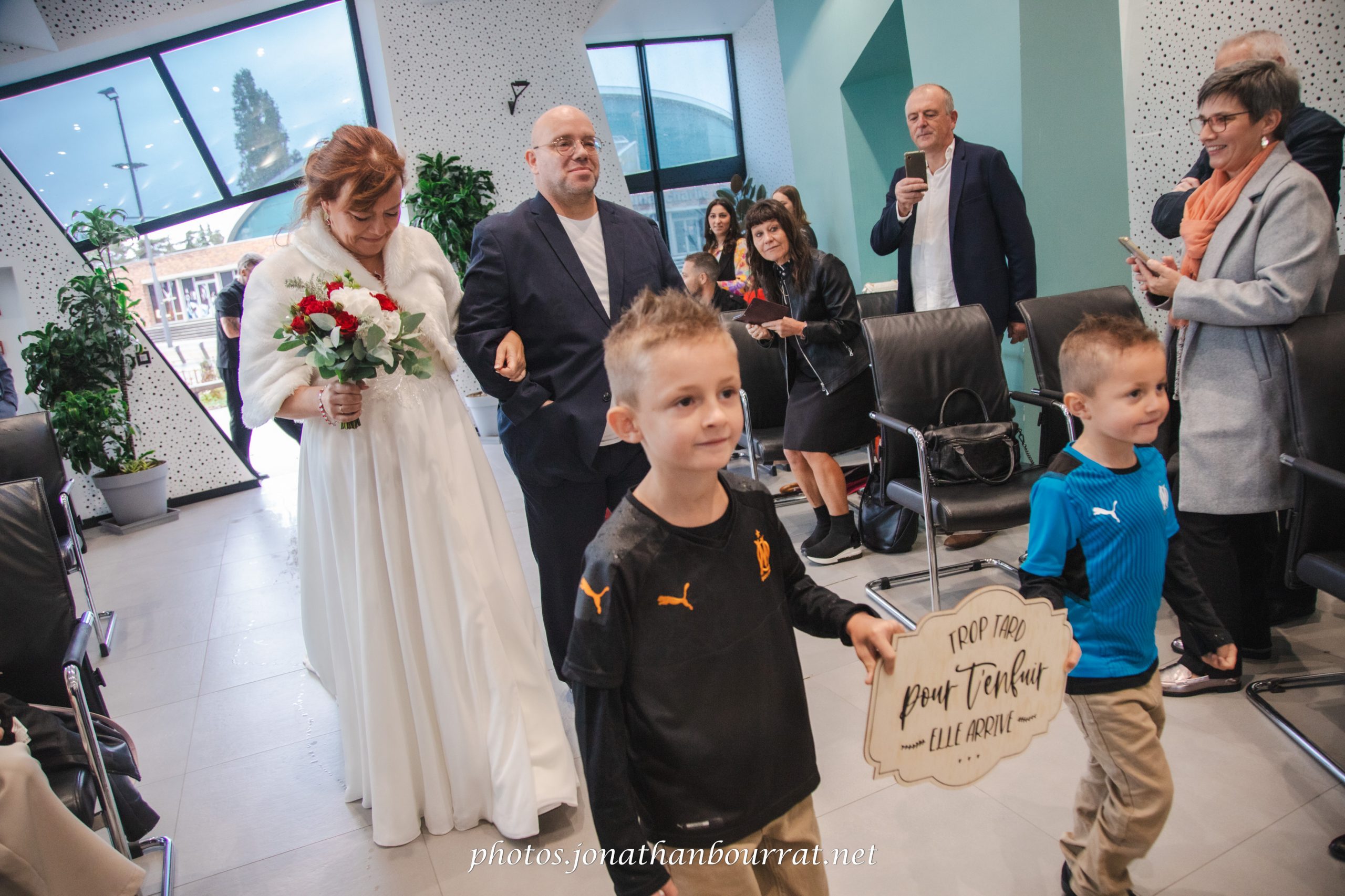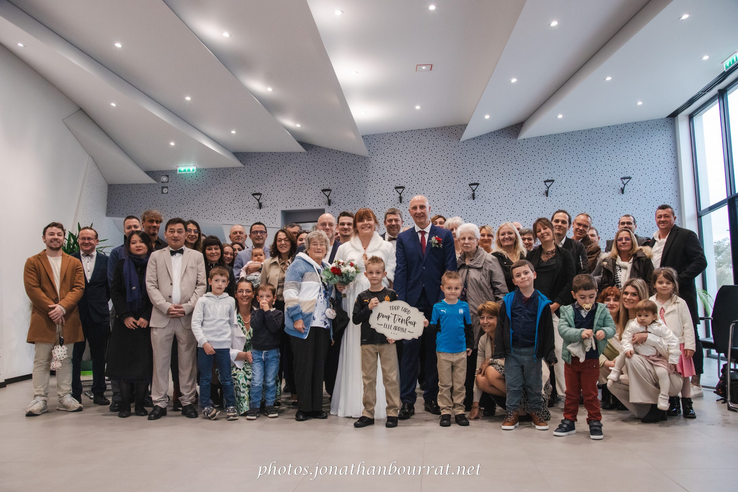 Ce reportage débuta donc du côté de la mairie de Vaulx-en-Velin qui propose une assez jolie salle à l’architecture moderne. Consentement, échange des alliances, baiser… autant de temps forts qui émurent l’assemblée. Une fois la cérémonie terminée les embrassades et accolades furent nombreuses. Même la pluie s’estompait, et la sortie des nouveaux époux fut saluée par une salve de bulles de savons générées par la invités (cela est plus original que l’habituel lancer de riz).