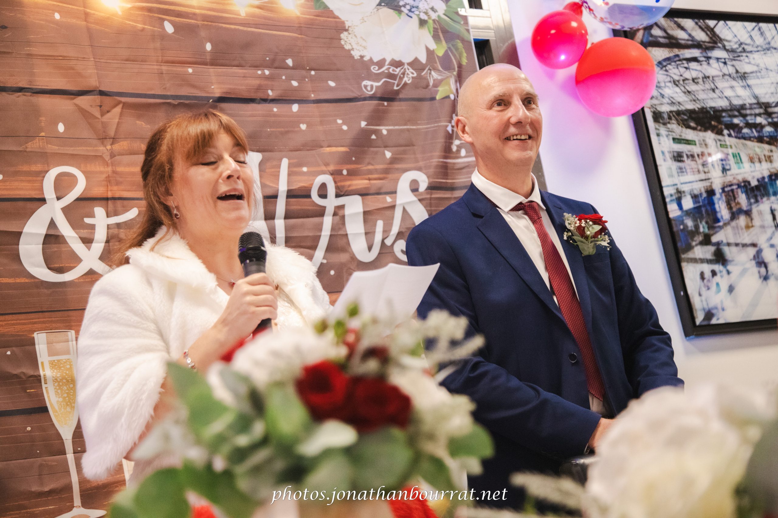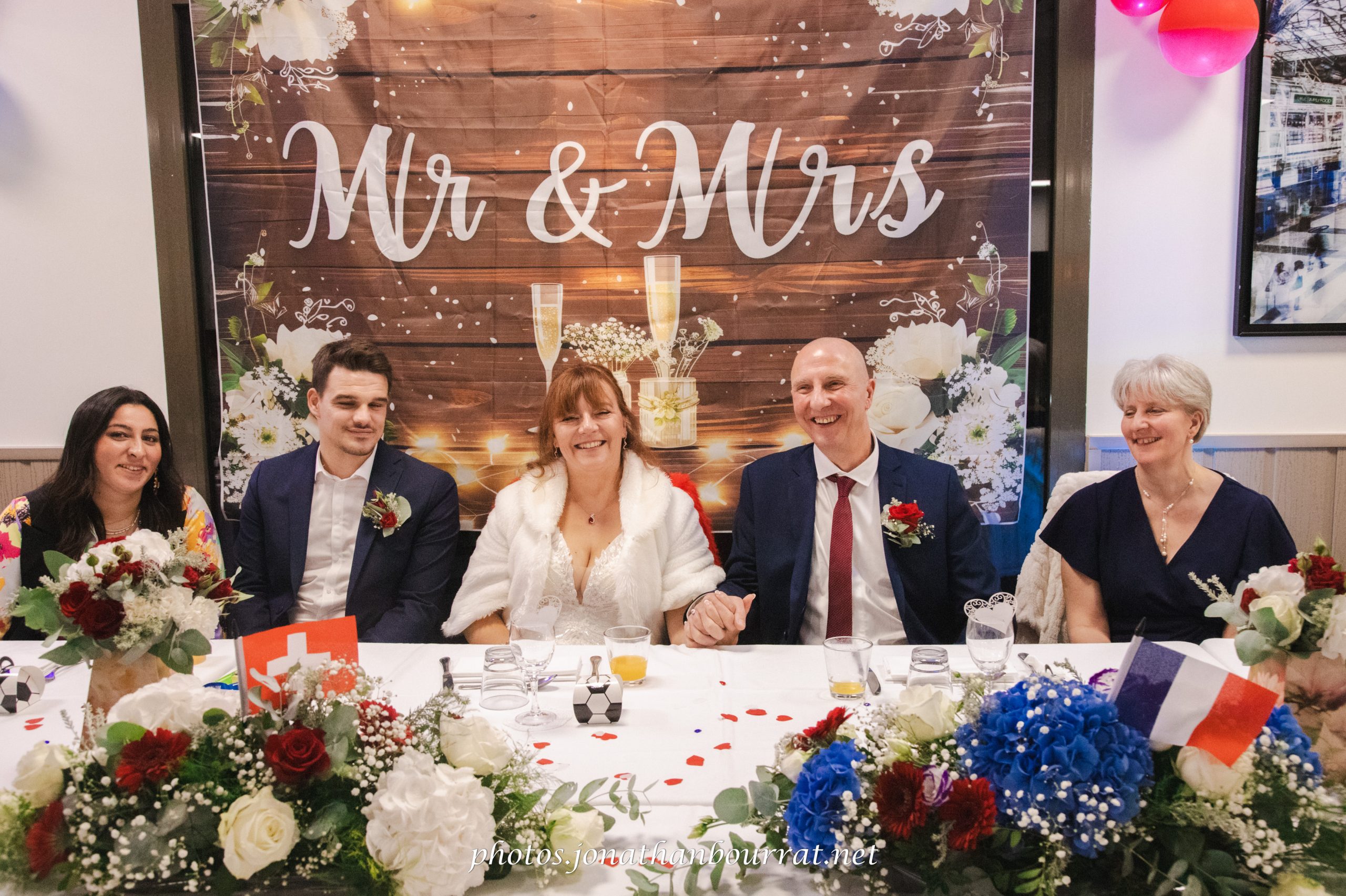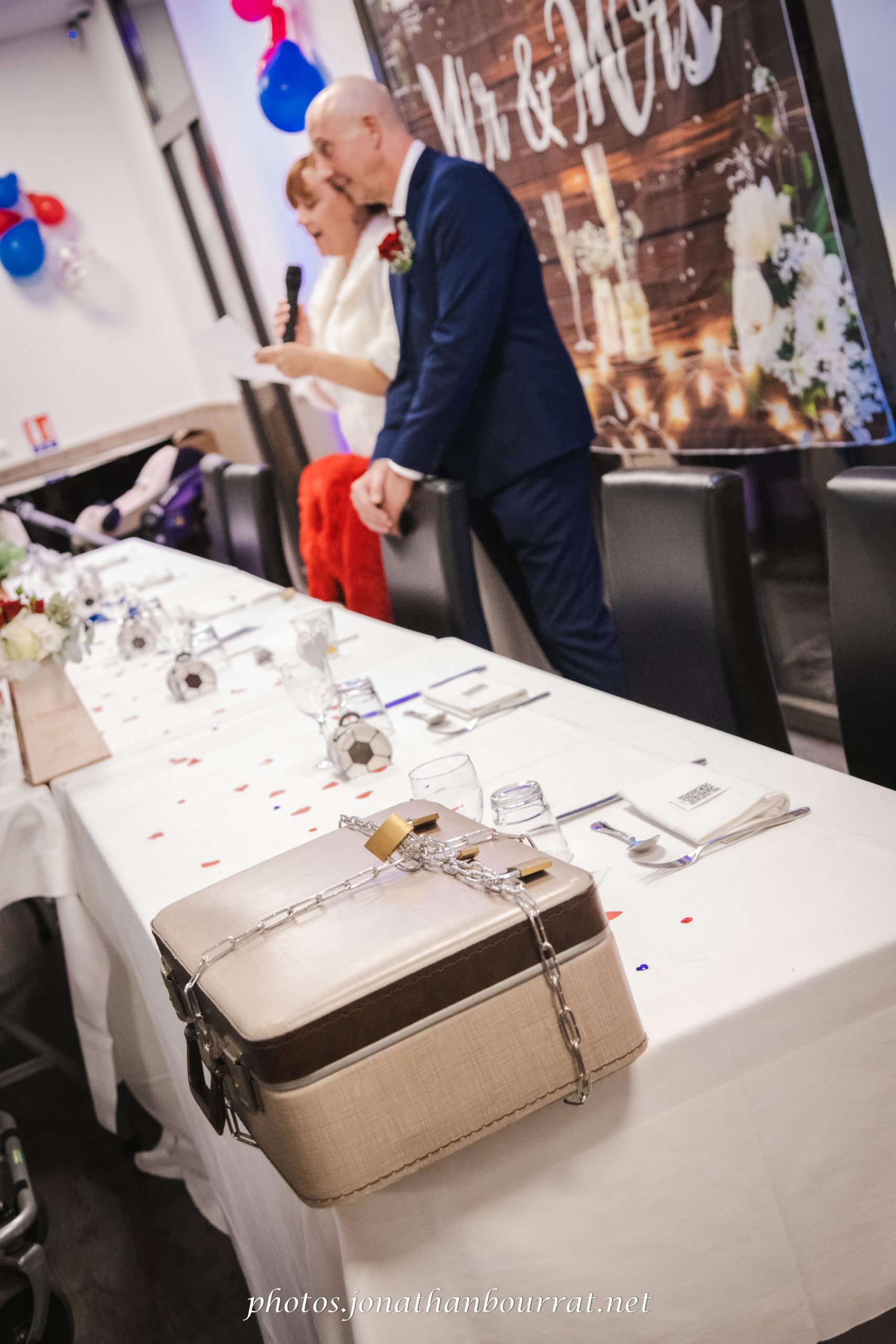 Remarquez au passage la décoration personnalisée qui mettait à l’honneur le pays de chacun des époux ainsi que leur passion pour le football (à noter que le Stade des Lumières de l’Olympique Lyonnais se trouve juste à proximité de ce domaine).